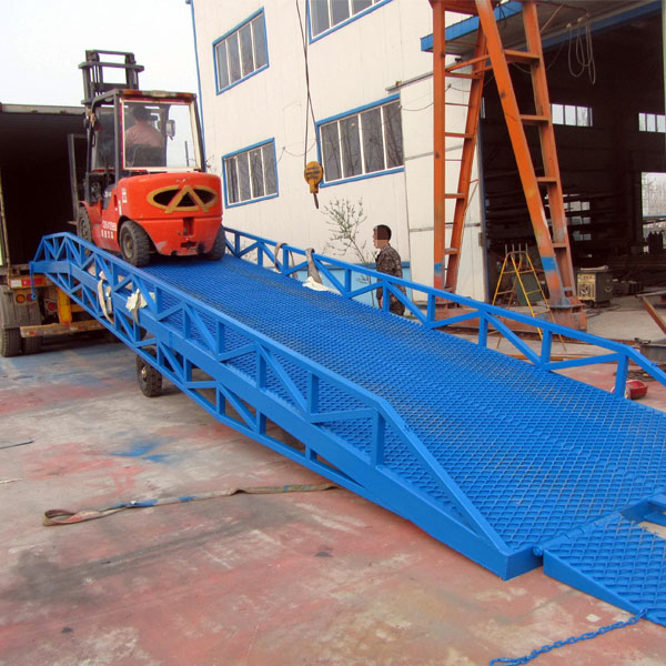 移動式(登車橋,液壓登車橋)是與叉車配合使用的貨物裝卸專用輔助設(shè)備。有了它,叉車能直接從地面駛?cè)肫囓?廂內(nèi)部進行批量裝缷作業(yè)。產(chǎn)品采用人工液壓動力,不需接動力電源。只需單人操作,即可實現(xiàn)貨物的安全快速裝卸。它可使您減少大量勞力,成倍提高裝卸作業(yè)效率,加快物料流通速度,獲取更大經(jīng)濟效益。